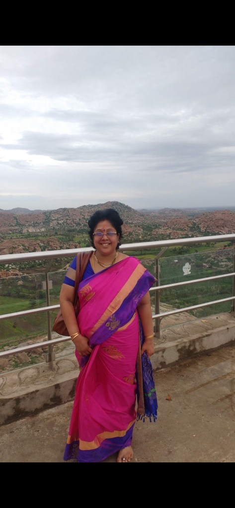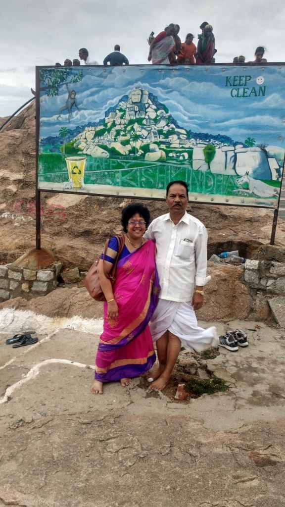 The view from the top of the hill is awesome. The view of Tungabhadra river flowing, paddy and plantain trees all over.