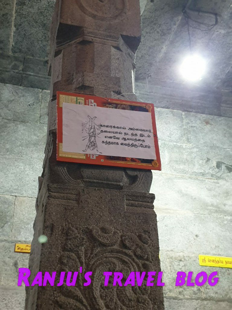 Another legend associated with this place is that since Karaikal Ammaiyar had walked on her head at this place, Saint Thiru Gnanasambandhar was afraid to set his foot on the soil. Not wanting to show any disrespect towards Karaikal Ammaiyar, he decided to stay in a nearby village and spent the night there without visiting this temple. However, Lord Shiva of this temple appeared in his dream and asked if he had forgotten to praise him. Next morning, he visited this temple and rendered a pathigam in which he mentioned about the “Neeli story” and God’s reminder to praise him.