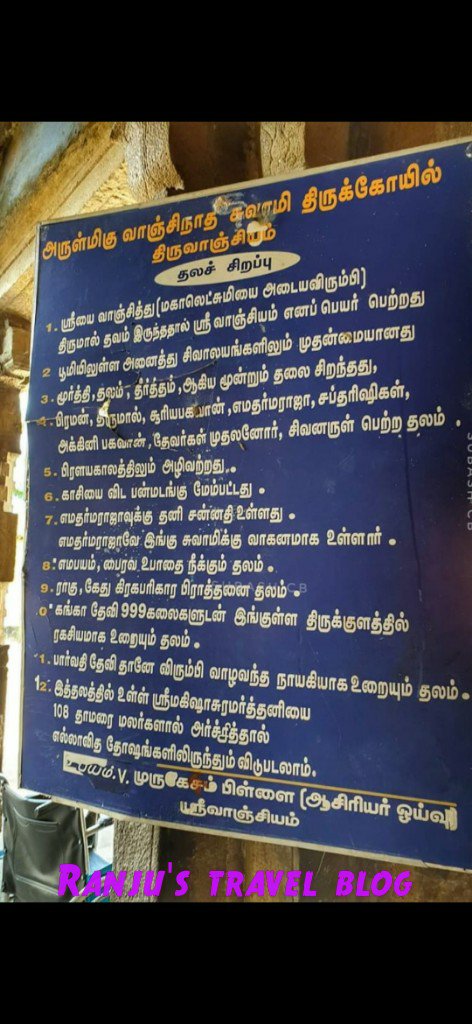In the main temple the presiding deity is Vanchinathan which is a Swayambhu (Self Manifested) Lingam, along with his consort Mangalambikai. Sandalwood is the Stala Vriksham here and Sandal leaves are used to perform pooja to the Lord .