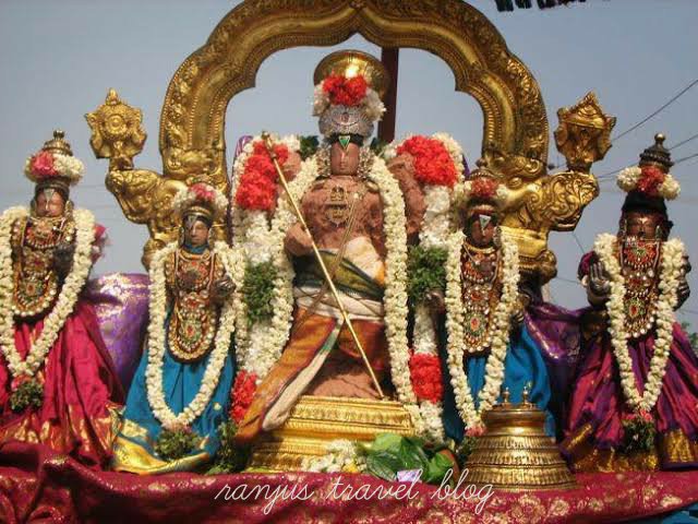 This is the temple where the Lord showed Vibheeshana, brother of Ravana, his walking beauty. After seeing the sleeping beauty of Vishnu as Lord Ranganatha at Srirangam, Vibheeshna wanted to see the walking beauty of the Lord, upon which he was directed by the Lord to his “Keezh(akku) Veedu’ (Eastern Gateway of the Lord).