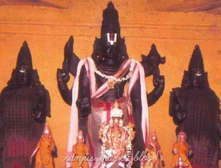 The legend behind the temple is that once an archahar, (bhattar,priest)called Ranga bhattar, due to poverty, was recycling used garlands to decorate the Lord. Once when the king visited, he noticed a strand of hair in the garland. The angered king asked the priest how a human hair could have got into the garland meant for Narayana. Flustered priest blabbered saying that it was the hair of the Lord Himself. The priest promised the king to show the Lord’s hair the next day. Fearing death penalty, the priest surrendered to the Lord. To save the poor priest Ranga bhattar, Lord appeared with thick hair and gave darshan to the king. Hence he is known as Sowriraja perumal ( Sowri – hair).