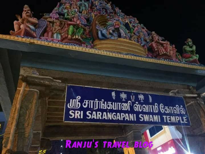 As per Hindu legend, the main deity, Lord Sarangapani , an incarnation of Lord Vishnu , appeared for a sage Hema Rishi , who performed penance in the bank of Potramarai tank . Once sage Bhrigu wanted to meet Vishnu at his residence , Ocean of Milk (Thiruparkadal) . The sage did not get the attention of Vishnu and in his anger , he kicked Lord Vishnu on his chest . Mahalakshmi who resides in Vishnu’s chest got angered as Vishnu did not show his anger towards the sage . She left Vaikunta and reached earth and took the form of Padmavathy . Lord Vishnu followed and married her . Padmavathy got her memories and was still angry with Lord Vishnu . To avoid her anger , Lord Vishnu resided in the underground chamber in the temple as Pathala Srinivasa . Meanwhile, the sage Bhrigu sought his apology and requested Mahalakshmi to be born to him as Komalavalli in his next birth . The sage was born as Hemarishi and performed penance to attain Mahalakshmi as his daughter . Lord Vishnu was pleased by the penance and he wished the sage to get Lakshmi as his daughter . Lakshmi emerged from the Potramarai tank among thousand lotuses and was thus named Komalavalli (the one who emerged from lotus) . Vishnu descended to earth as Aravamudhan in a chariot drawn by horses and elephants from his abode Vaikuntam . He stayed in the nearby Someswaran Temple to convince Lakshmi to marry him and the couple eventually got married . The name Sarangapani (“one who has the bow in his hand”) derives from the Sanskrit word Sarangam meaning bow of Vishnu and pani meaning hand .
