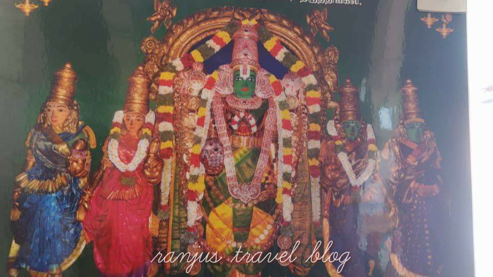 Sthalapuranam once there was an arguement between the Goddesses Sridevi Bhumidevi and Neeladevi on degree of their devotion towards Lord Vishnu . Goddess Sridevi came to this place getting angry and was in deep meditation . Seeing her devotion Lord Vishnu gave her dharshan . Here the Lord gives dharshan along with