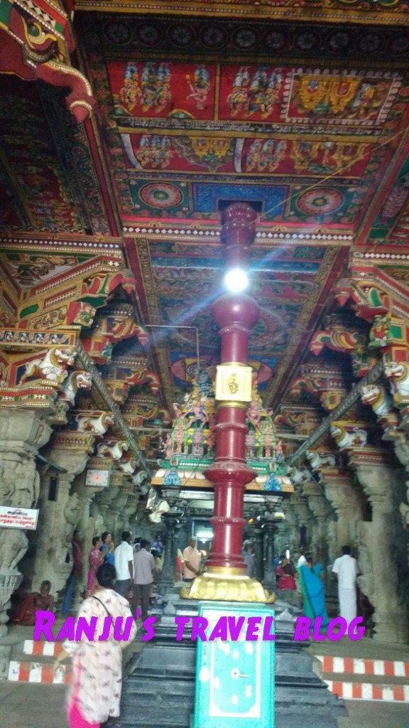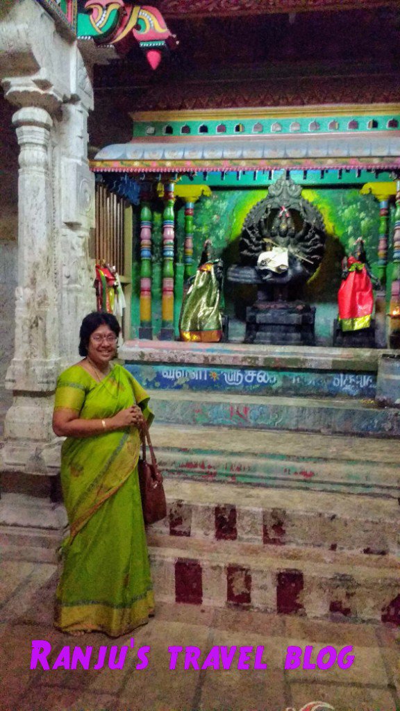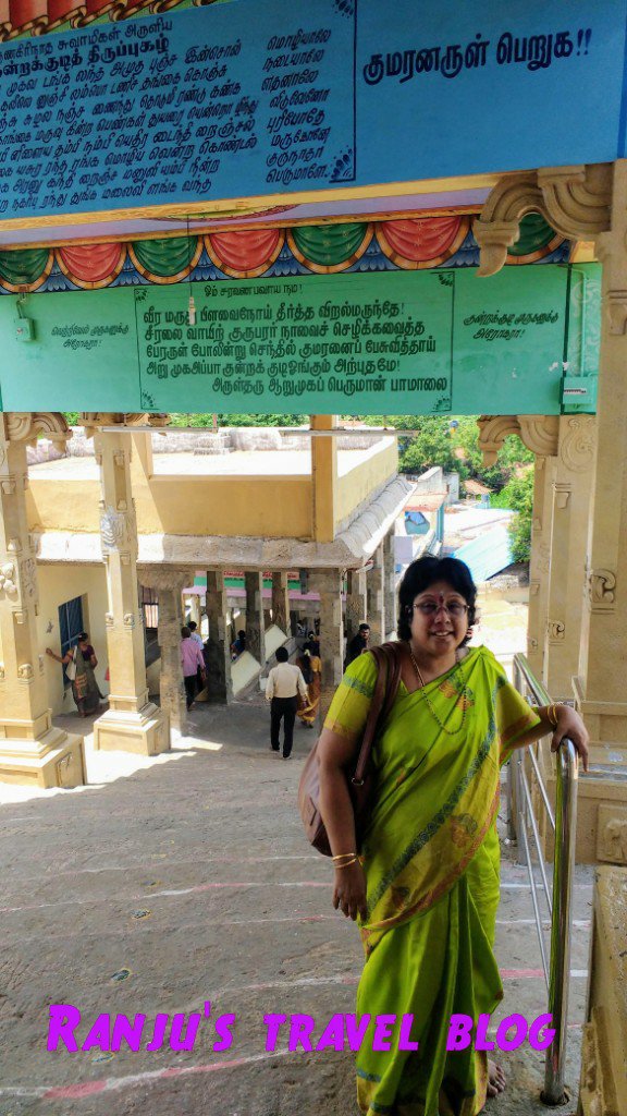 This is a temple of Lord Murugar with his consorts valli and deivayanai sitting on his vehicle peacock with six face and twelve hands is on a small hillock and one has to climb 150 steps.