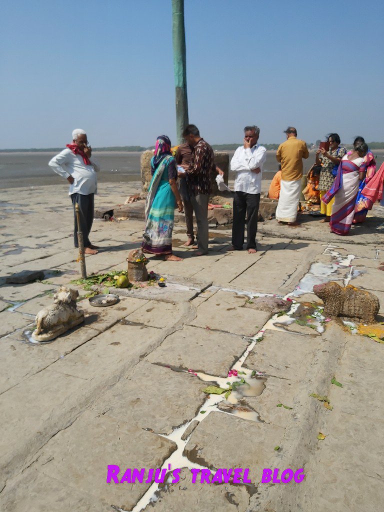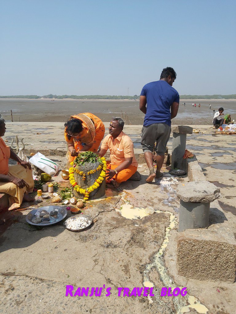 There are 5 lingas with nandi opposite to each of it . One can worship the Nishkalang mahadev when the tides are sunken inside the sea and gives us way to enter the temple. About 1 to 2 kms one has to walk to have the dharshan of the 5 lingas . Nishkalang means purity guiltless and innocence . Walking in the slush of the sea bed is a great task on the way they sell sandal powder milk coconut to offer to God . There is a priest to do the rituals like arathy and archanai .