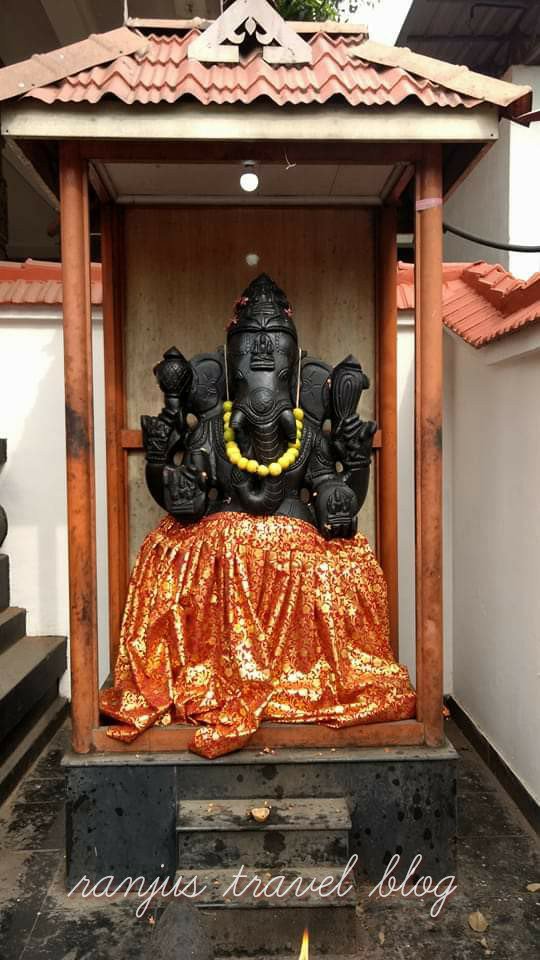 There are seperate shrines for Lord Ganesha Goddess Baghavathy Lord Ayyappan and Lord Ranganathar with Goddess Lakshmi. There is a Thulabharam (balance) people offer bananas jackfruit sugar whatever they have prayed to the lord according to their weights.