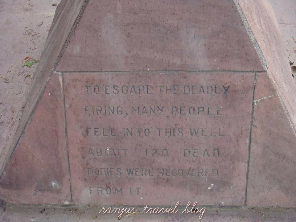 There is a well in that complex to escape from the bullet shots the innocent crowd fell into the well and died . It is closed with iron mesh now .