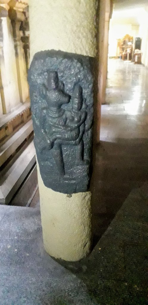 The backside pillars of the main sanctum sanctorum were carved with Lord krishna and Lord Lakshmi Varaghar .