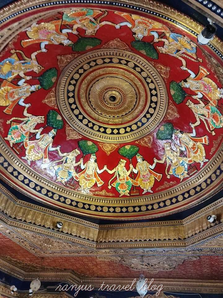 Daily there is a different alankaram to god. That is one more special and unique thing of this temple. Temple is open from Morning 06:00 to 12:00 and evening 04:00 to 08:00. During alankara they ask you to sit and will tell history of the temple and then bhajans will start . Gents are allowed with bare top. Shirt and baniyan has to remove before entering into main temple . Bhajan will end once alankaram is finished . After swamy alankar is over they will open curtain and you will have the divine dharshan 12 feet height swamy in front of you with well decorated avatar. It is not only surprising and also amazing . You will feel blessed. Inside walls and ceiling are decorated beautifully with gold foil paintings done on fibre glass which gave a rich red and gold ambiance.