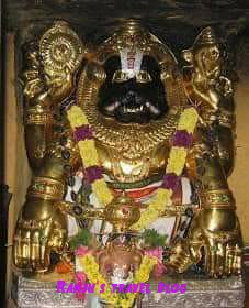 Even the celestials were affected by it and they all came to Gajagiri Kshetram and prayed to the Lord to calm down. The Lord could not be pacified and then they sought the help of Prahlada, whose arrival quietened him to some extent. They prayed to the Goddess Mahalakshmi, who also took her abode in him as Narasingavalli, after which he became Yoga Narasimha. The Lord later granted the boon sought by the sage.