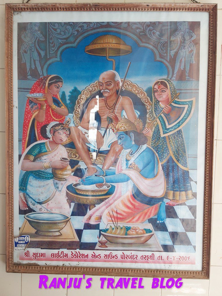 The temple main deities are Lord krishna with his consort Goddess Rukmani and Sudama with his consort Susheela. At the entrance is a maze and a kund named Sudama kund . Seperate shrines for Lord Ganesha and Lord Anjineyar . Paintings of Radha and Lord Krishna doing padha pooja to Kuselar are present on the walls of the temple . This place was anciently known as Sudama Puri .