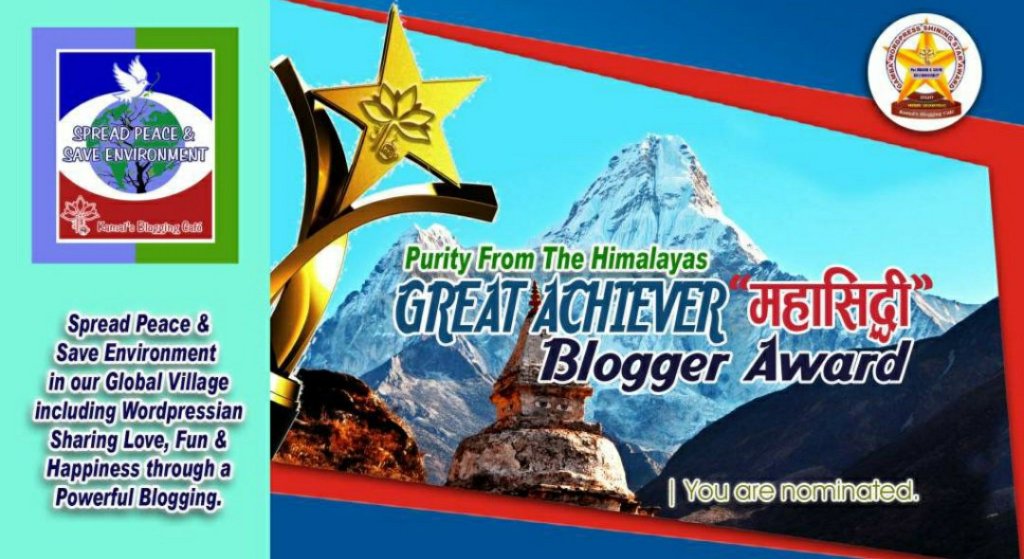 He introduced the ‘GREAT ACHIEVER “महासिद्धी” (MAHASIDDHI) BLOGGER AWARD‘ to expand peace in our global village- WordPress. “This award goes to a real achiever and successor who has been giving their creative feelings and thoughts exquisitely presenting a good perfection of work of art in WordPress Writing.” These beautiful and considerate words about the award are by mr. Kamal and I don’t need to describe more about him and his blog