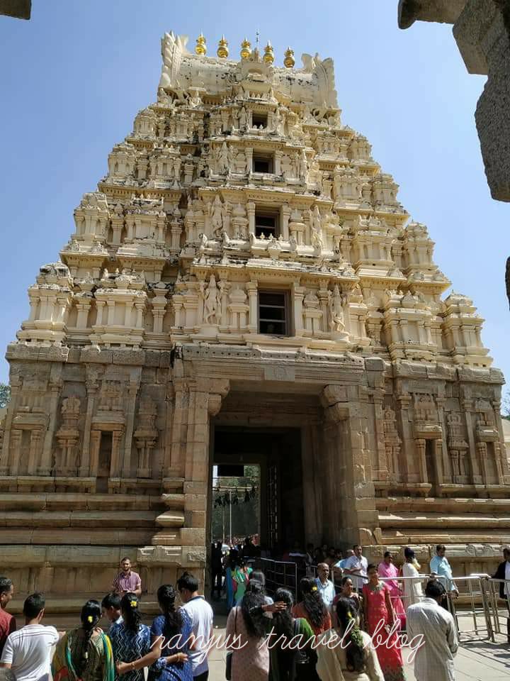 Saints and Alwars are enshrined on the corridors. Two pillars in front of the inner entrance are called Chaturvimsati. The 24 forms of Vishnu with their names are engraved thereon. In the north-west corner is the shrine of the Divine Consort Ranganayaki Thayar and the sacred feet of the Lord. Pattabhirama with Sita and Anjaneya at His feet and Lord Rajamannar are wonderful sculptures. There is another Krishna shrine, which is very popular among the devotees. The murti’s of Srinivasa and Panchamukha Anjaneya, installed by Guru Vyasaraya, are noteworthy.