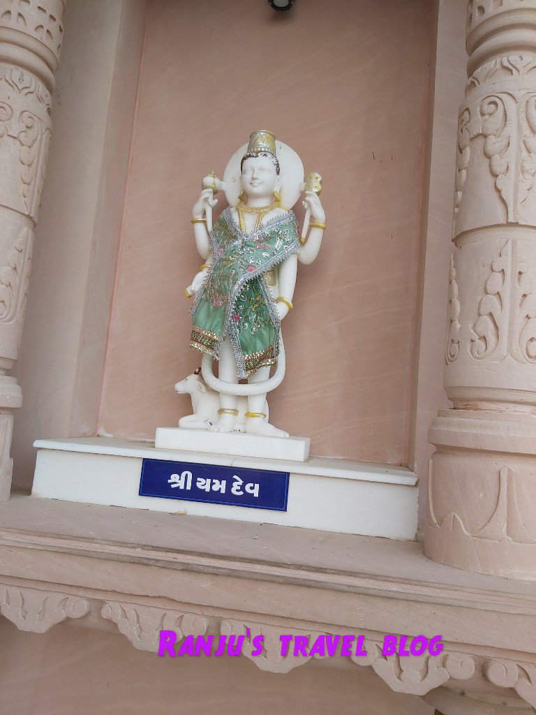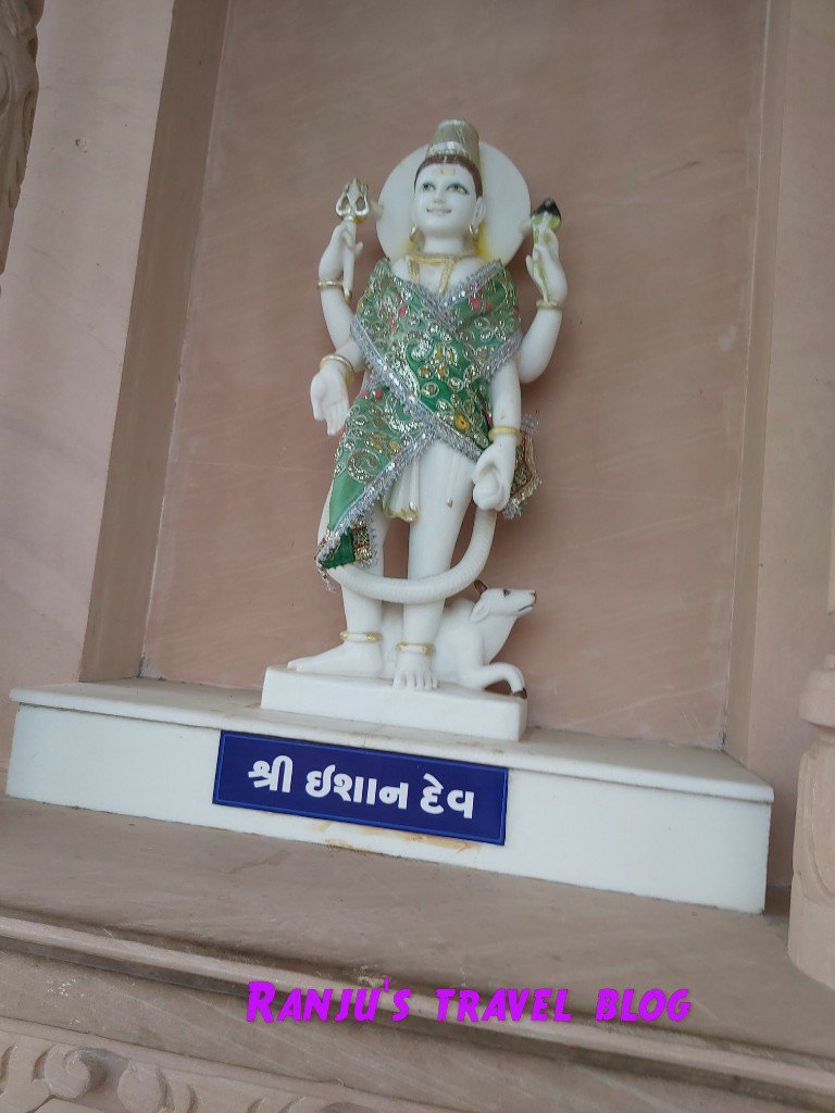 Next to Balka theerth in Dwaraka was a temple maintained by Brahmakumaris . The temple itself was in the shape of a huge linga and we were waiting for others to come , our bus driver asked us to have a visit of that temple . So we entered the temple. In the entrance a small garden was maintained with a fountain in the center and the in main entrance was Lord krishna in Venu madhav posture with a flute in hand and leg crossed with a cow at the back . The temple itself was like a circular hall . Inside there were statues of many more God n Goddesses idols .
