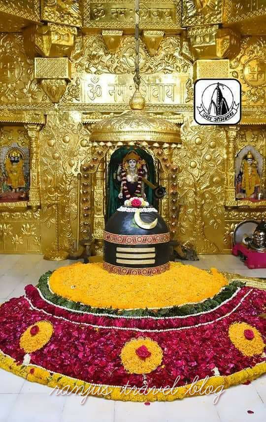 In the Somnath mandir the main deity is the huge lingam well decorated with chandan and kumkum with his consort Goddess Parvathi backside of the lingam , Lord Ganesha and Lord Murugar on both sides .